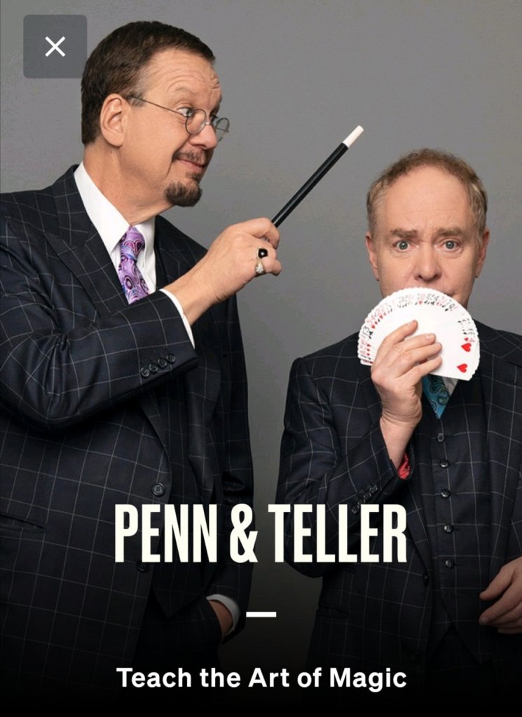 Penne and Teller’s course is one of the shortest sessions in Masterclass but requires the most time. The play and pause buttons are on repeat because I like rehearsing the magic techniques.