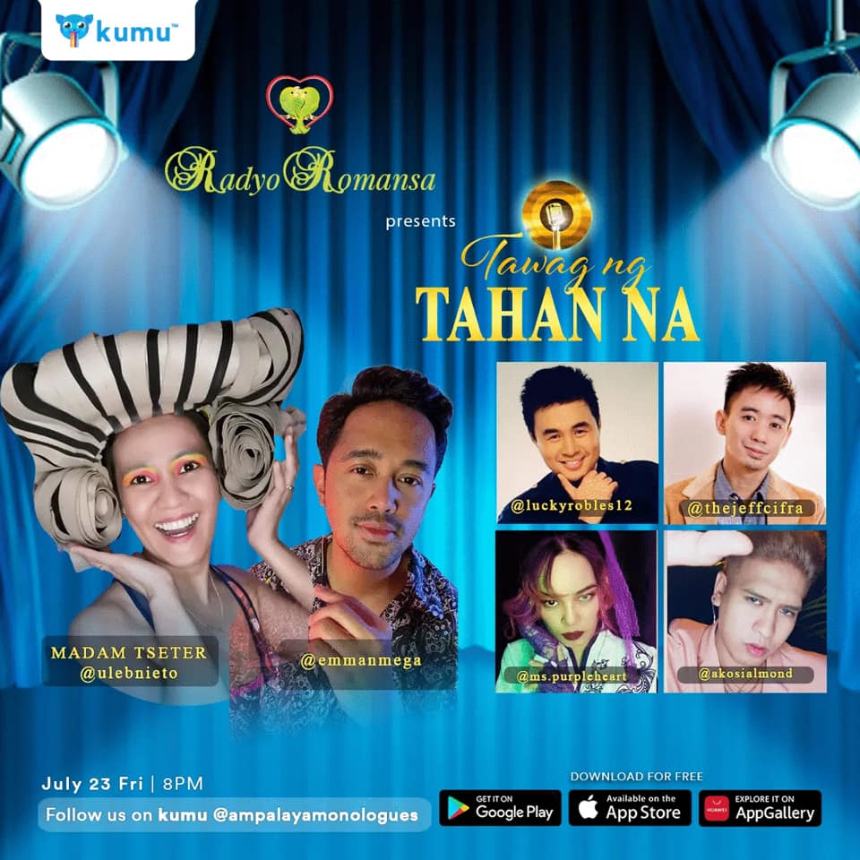 Sa episode 13 ng Ang Paglalakbay ni Madam Tseter sa Kumuniverse ay patatahanin kayo ni Madam sa inyong tahanan sa RADYO ROMANSA PRESENTS Tawag ng Tahan na. Makaka-holding hands ni Madam ang kanyang KBFF (Kumu Bestfriends Forever) na si @emmanmega at ang mga special guest na haharanahin kayo depende kung El Niño o La Niña ang klima ng puso ninyo: